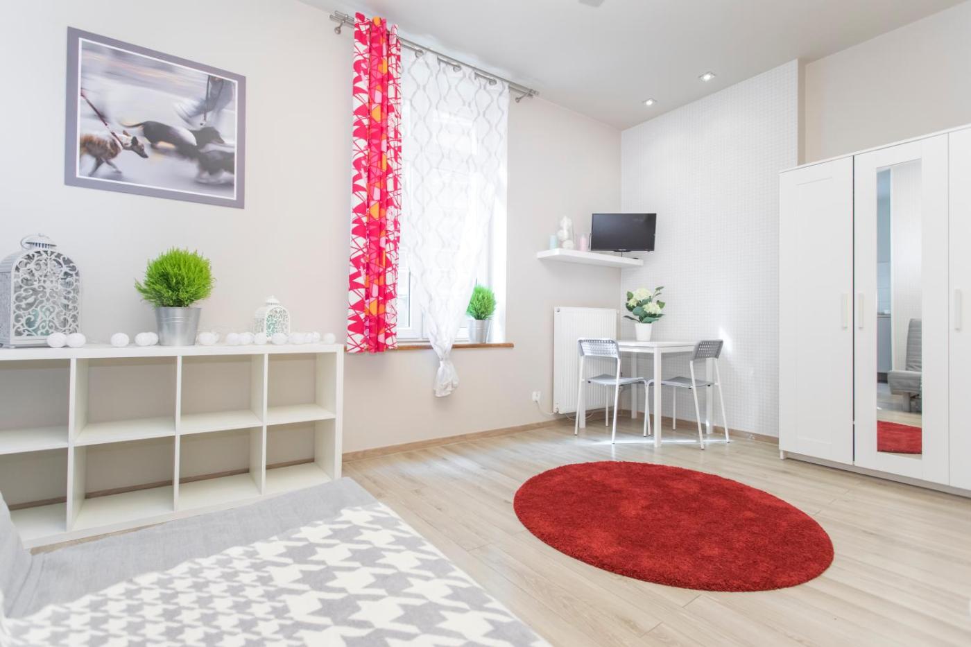 Studio (2 osoby dorosłe). The studio features a dining area, a wardrobe, as well as a private bathroom featuring a walk-in shower and a hairdryer. Guests can make meals in the kitchenette that comes with a stovetop, a refrigerator and kitchenware. The studio provides a flat-screen TV with cable channels, a private entrance, soundproof walls, a tea and coffee maker as well as ancourtyard view. The unit offers 1 bed. Studio - 2 osobowy. Powierzchnia pokoju ok.: 29 mkw. ;