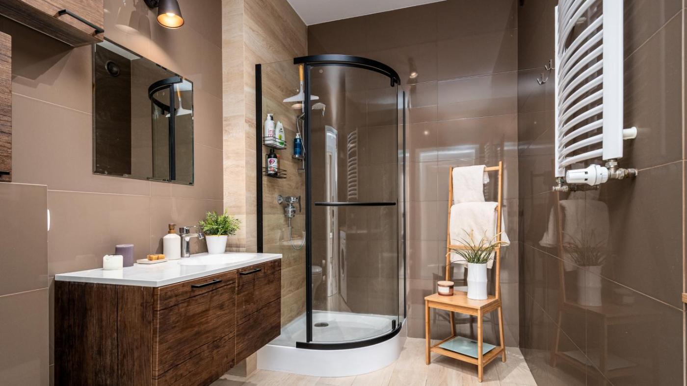 Apartament z 3 sypialniami. This spacious apartment features 1 living room, 3 separate bedrooms and 1 bathroom with a shower and a hairdryer. The fully equipped kitchenette has a stovetop, a refrigerator, a dishwasher and kitchenware. Boasting a balcony with city views, this apartment also features a washing machine and a flat-screen TV with cable channels. The unit has 3 beds. Apartament - 6 osobowy. Powierzchnia pokoju ok.: 98 mkw.
